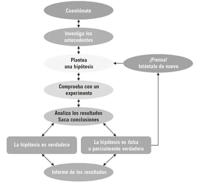 Ya tenemos el método científico. Primero observamos algo que nos llama la atención. Luego lo queremos explicar y hacemos una hipótesis. Posteriormente probamos la hipótesis que hemos hecho con muchos experimentos. Si se observa que no hay desviaciones con respecto a lo que esperamos que ocurra, podemos decir que hemos probado nuestra hipótesis creando una teoría o ley física. Finalmente publicamos nuestros resultados para que todos puedan conocerlos y ponerlos en duda con nuevos experimentos.