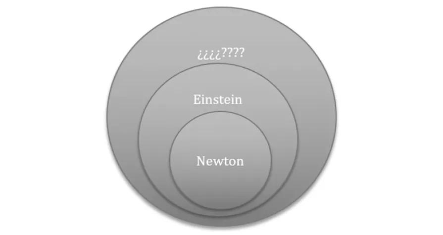 ¿Habrá otra teoría que llegue a desbancar la teoría de Einstein? Seguramente; creemos, de hecho, que sí. Una teoría que ocupe todo el campo de juego. Esta teoría no hará que la de Einstein sea incorrecta, ni que deje de usarse. Lo mismo que la de Einstein significó para la gravitación de Newton. Sería una ampliación más válida que ambas en ciertos casos pero que se reduce a ellas cuando tratamos temas más generales.