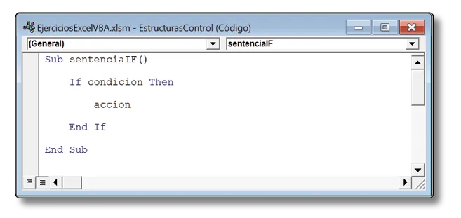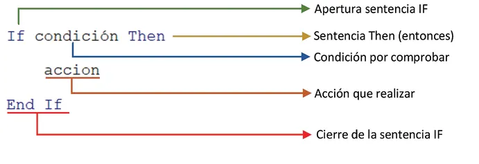 Llevado al lenguaje VBA en Excel, la sentencia If tiene la siguiente sintaxis.