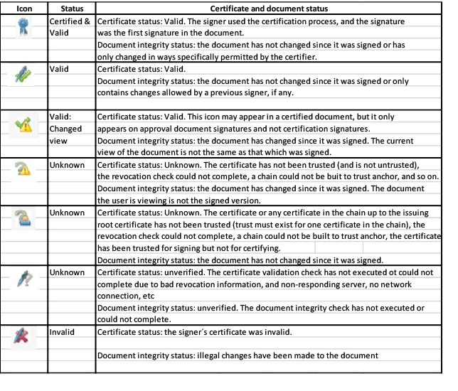 • PDF-Signature: es una firma embebida en documentos PDF acordes a estándares ISO-32001. El que la firma embebida en un documento PDF hace que este formato sea el más “accesible”. Es decir, una firma embebida en un PDF podría ser visualizada por un usuario que disponga cualquier lector de PDF estándar, como pudiera ser Acrobat Reader.