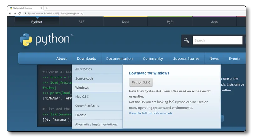 En la sección “Downloads”, dedicada a la descarga de las distintas versiones de Python, podremos colocar el cursor del ratón y seleccionar nuestra plataforma:
