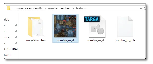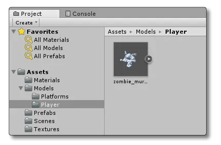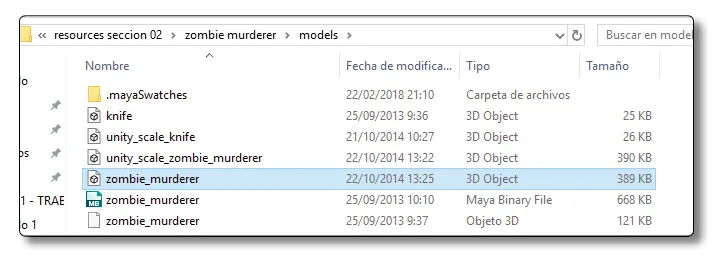 2. Importe dentro del folder Player el objeto “zombie_murderer” de la carpeta de “resources seccion 02”.