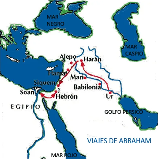 Tras marchar de Ur con su padre y muerto este en Harán, cuenta el Génesis que Yahvé dijo a Abrán: «Vete de tu tierra, de tu patria y de la casa de tu padre a la tierra que yo te mostraré». Y así lo hizo Abrán, patriarca venerado por los fieles de las tres religiones monoteístas.