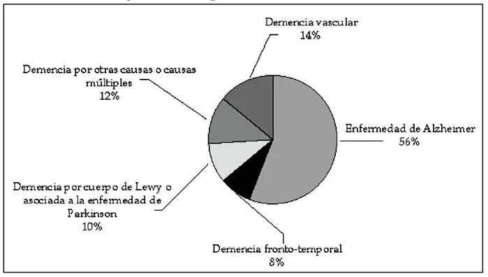 Las demencias más frecuentes son la enfermedad de Alzheimer y las demencias vasculares. Les siguen las otras demencias caracterizadas por muerte neuronal, como la demencia por cuerpos de Lewy, la demencia asociada a la enfermedad de Parkinson y la demencia fronto-temporal. Aún menos frecuentes son las demencias secundarias a una infección, a una enfermedad médica general o al abuso de fármacos (ver figura 1).