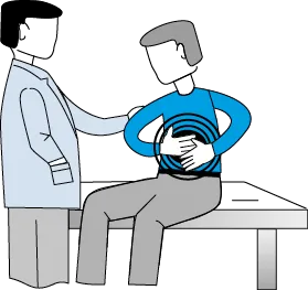 •Ejemplo 2: paciente traído por sus familiares con dolor abdominal que lo obliga a estar encogido (postura) y a hacer gestos de sufrimiento; entra en camilla, no saluda al médico y a las preguntas de éste, solo responde que desea algo para calmar su dolor (figura 1-2).