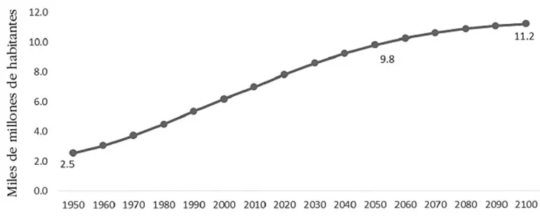 Gráfica 1. Tendencias de crecimiento de la población mundial (1950-2100)