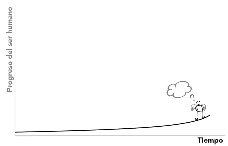 Presentamos la siguiente viñeta para ayudar a entender el cambio de mentalidad que se está produciendo en muchas áreas de la sociedad, desde el progreso tecnológico hasta el aumento de la población. Mucha gente cree que nos encontramos en un momento crítico de la historia de la humanidad, en el que la IA nos conduce a un futuro ya cercano donde se producirá un nivel de cambio sin precedentes.