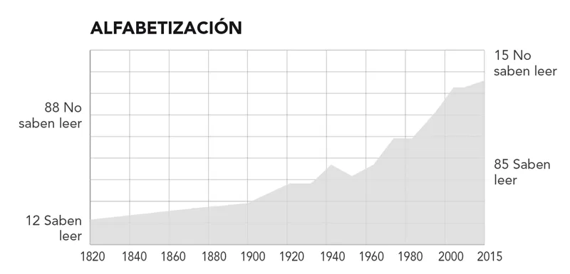 Cuadro 1.3 El mundo según una muestra de cien personas en pobreza, educación y alfabetización en los últimos doscientos años*