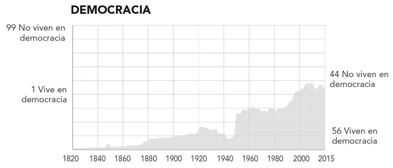 Cuadro 1.4 El mundo según una muestra de cien personas en democracia, vacunación y mortalidad infantil en los últimos doscientos años*