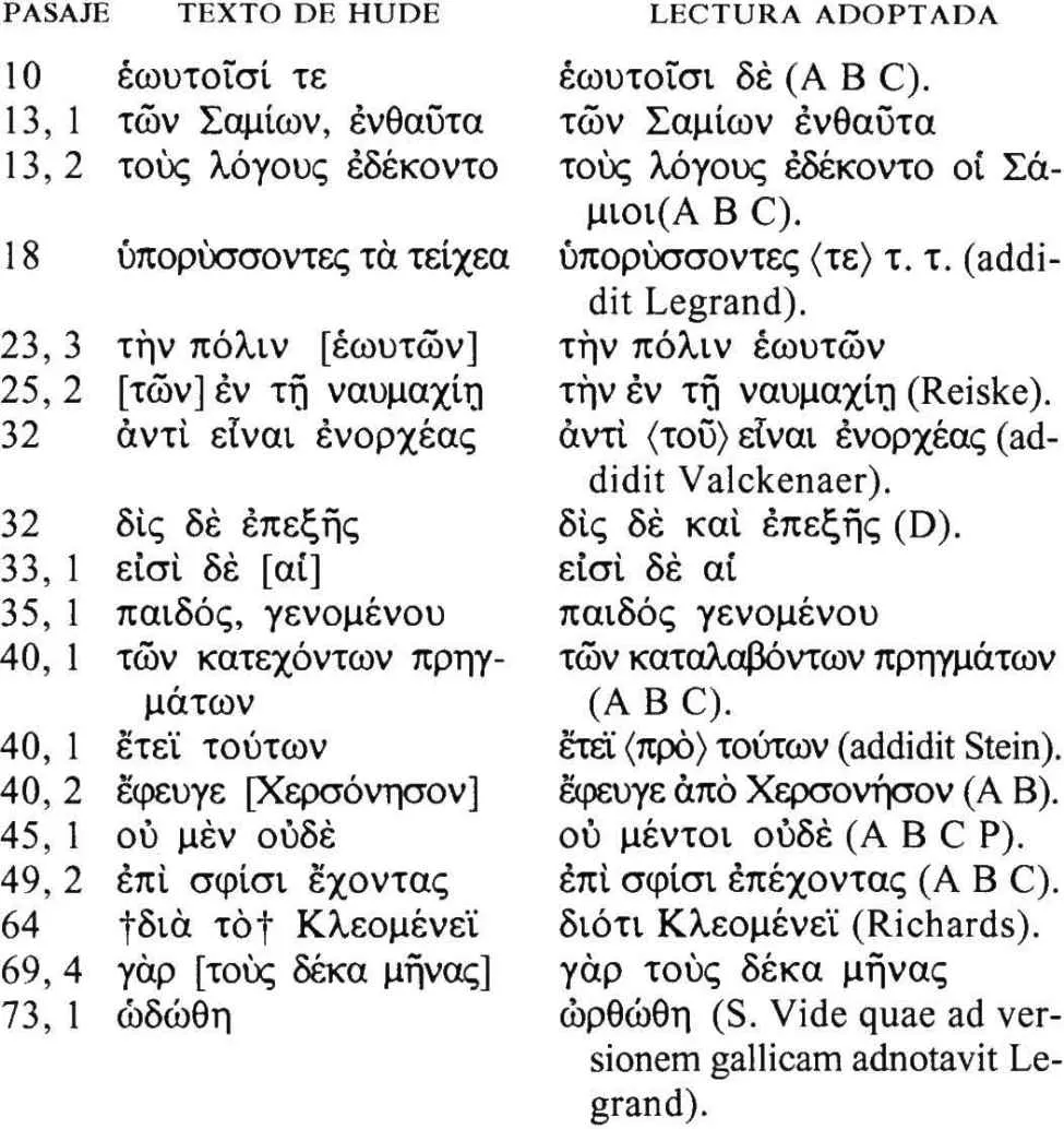 VARIANTES RESPECTO A LA EDICIÓN OXONIENSIS DE HUDE