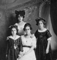 Frida creció en Coyoacán con su familia; cuando enfermó de poliomielitis, sus hermanas cuidaron de ella. Abajo, a la izquierda, su madre Matilde (de pie) en un retrato de 1916 junto a Frida y sus hermanas: Adriana (sentada en el centro) y Cristina (a la izquierda). Abajo, a la derecha, un retrato de Frida cuando entró en la Escuela Nacional Preparatoria. Arriba, una fotografía de sus padres.