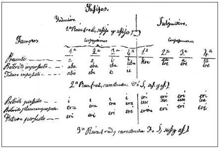 Labores escolares de Pablo Iglesias. En el Hospicio se impartía una rudimentaria enseñanza elemental previa a la elección de oficio. En la imagen, trabajos de conjugación latina.