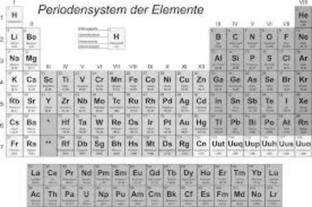 En resumen, se puede decir lo siguiente acerca de la tabla periódica de los elementos: La tabla periódica de los elementos es una lista de todos los elementos químicos, ordenados de acuerdo con la carga nuclear creciente o número atómico como se les puede llamar. La lista se divide en puntos para que cada grupo de la tabla resultante contenga elementos con propiedades químicas similares. El nombre Tabla periódica de los elementos también indica que al aumentar el número atómico, muchas propiedades de los elementos se repiten periódicamente. Históricamente, la tabla periódica de los elementos fue de particular importancia para la predicción con base científica de elementos aún no descubiertos y sus propiedades, ya que las propiedades de un elemento pueden predecirse aproximadamente si las propiedades de los elementos circundantes se conocen en la tabla periódica. Hasta aquí todo bien. Cómo y de qué manera se puede transferir la clasificación de elementos materiales a "elementos" espirituales.