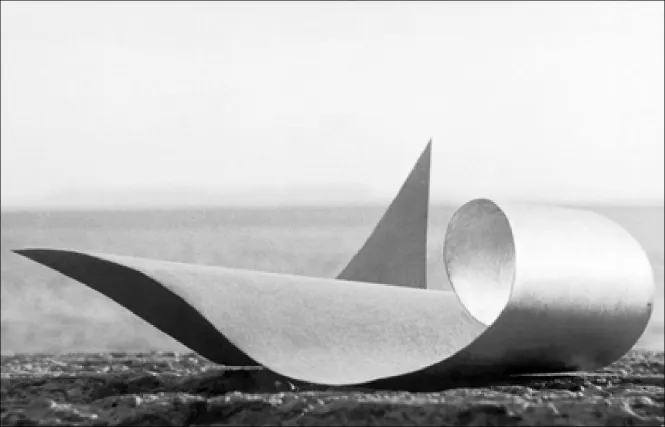 –No el metal, la lámina. La «lámina». Lo mismo me daría que fuese de papel. Pero el metal, la lámina de metal, presenta más viabilidad «práctica». La «lámina» es liviana, maleable, concisa y rápida: se «integra» en el espacio, y permite dar a la forma un dinamismo vivo...