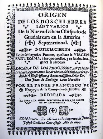 Imagen I. Origen de los dos célebres Santuarios de la Nueva Galicia… de 1694