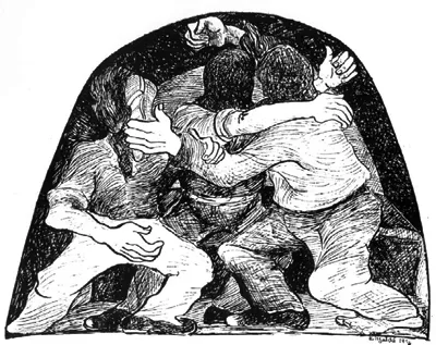 Los detuvo el cansancio. El de en medio propuso la reglamentación de los puñetazos. Era realmente inútil que los tres se agotaran; podrían golpear por turno (como en aquella película norteamericana en la que unos aviadores perdidos se turnaban la manivela de un trasmisor de mano), así, sería posible hacer un ruido casi constante y llamar la atención de alguien.