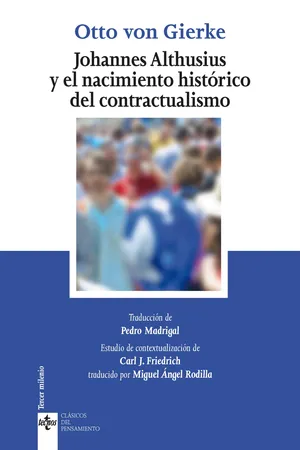 Sí, puedes acceder a Johannes Althusius y el nacimiento histórico del contractualismo de Otto von Gierke, Pedro Madrigal Devesa,Miguel Angel Rodilla González en formato PDF o ePUB, así como a otros libros populares de Filosofía y Historia y teoría filosóficas. Tenemos más de un millón de libros disponibles en nuestro catálogo para que explores.