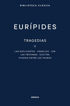 El segundo tomo de las tragedias completas de Eurípides en la Biblioteca Clásica reúne las obras: Las suplicantes, Heracles, Ion, Las troyanas, Electra e Ifigenia entre los tauros.