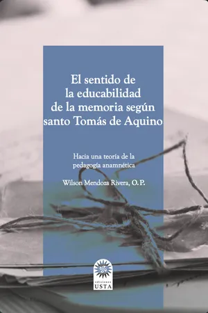 Sí, puedes acceder a El sentido de la educabilidad de la memoria según santo Tomás de Aquino de Wilson Fernando Mendoza Rivera en formato PDF o ePUB, así como a otros libros populares de Education y Education Theory & Practice. Tenemos más de un millón de libros disponibles en nuestro catálogo para que explores.