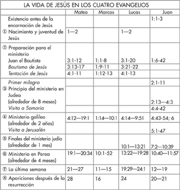 Para mayor comodidad, la vida de Jesús se puede dividir en ocho períodos, de la siguiente manera:
