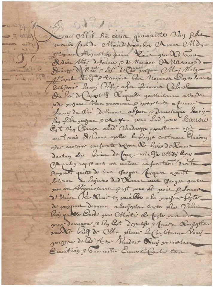 - Document 90 - 5 décembre 1644 - Vente par Jacques Saury d'un champ et d'un palsire à Balthazar de Grave seigneur de Lanet