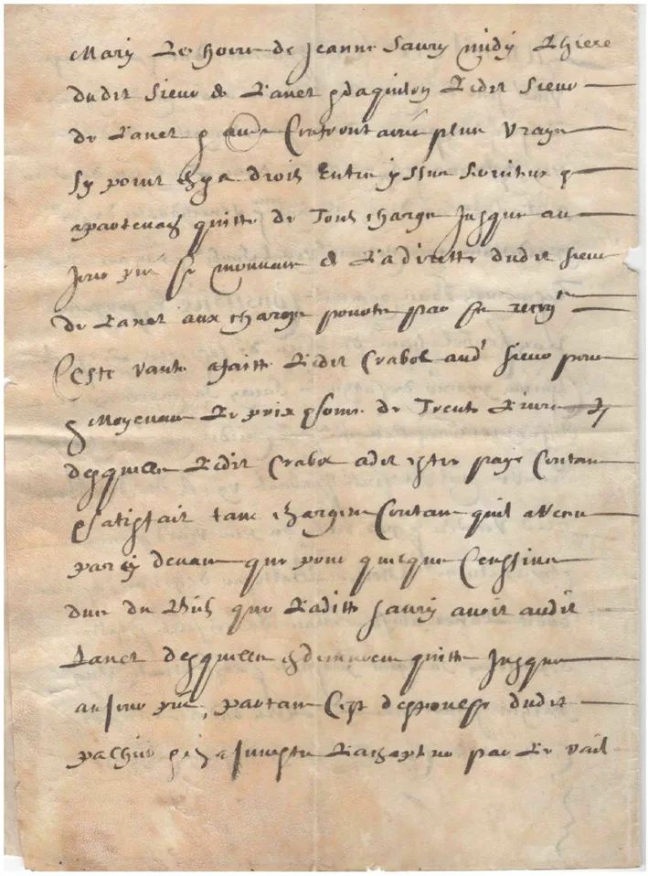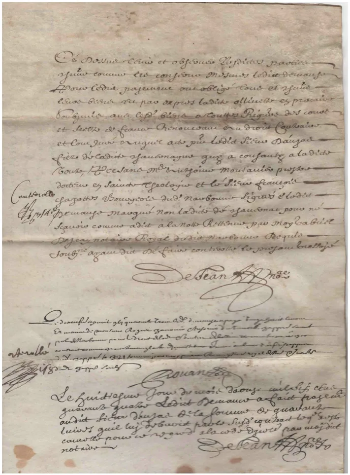 - Document 81 – 24 février 1635 – échange de bail de champs situés à Lanet entre François Saury et Catherine Saury