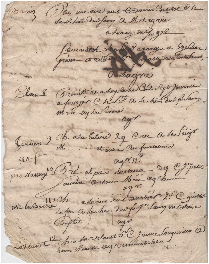 - La Canalette. Champ et pré a La Canalette, 5 sous. C : chemin. A : riviere, M : le seigneur, Aq : chemin. Agrie.