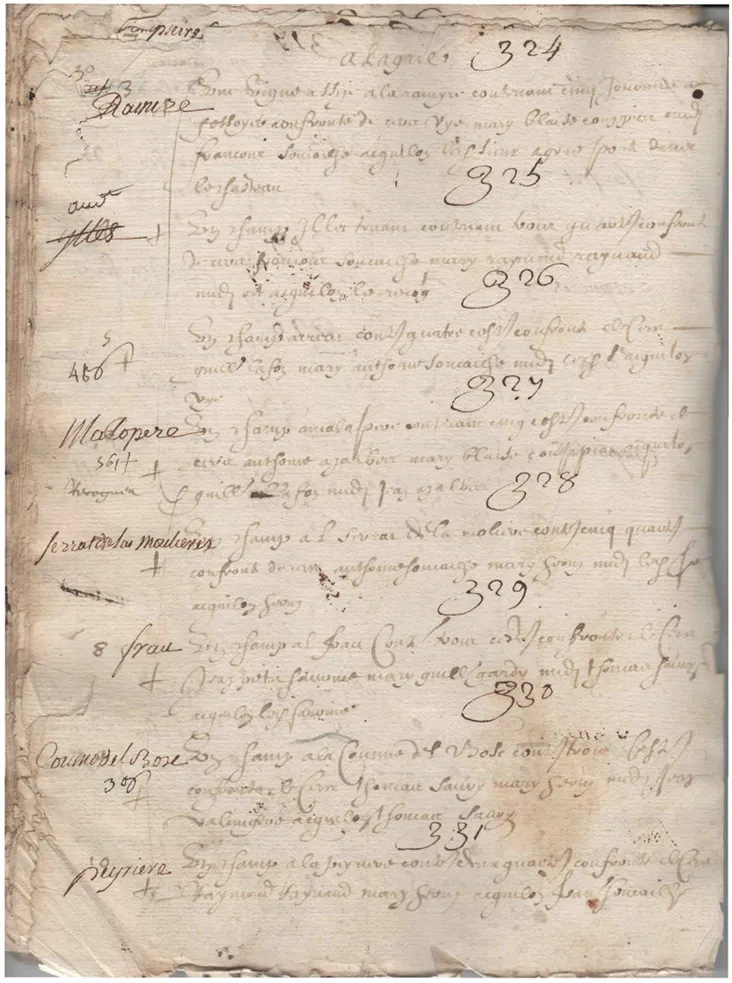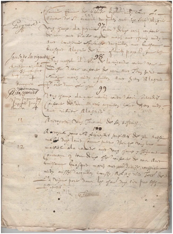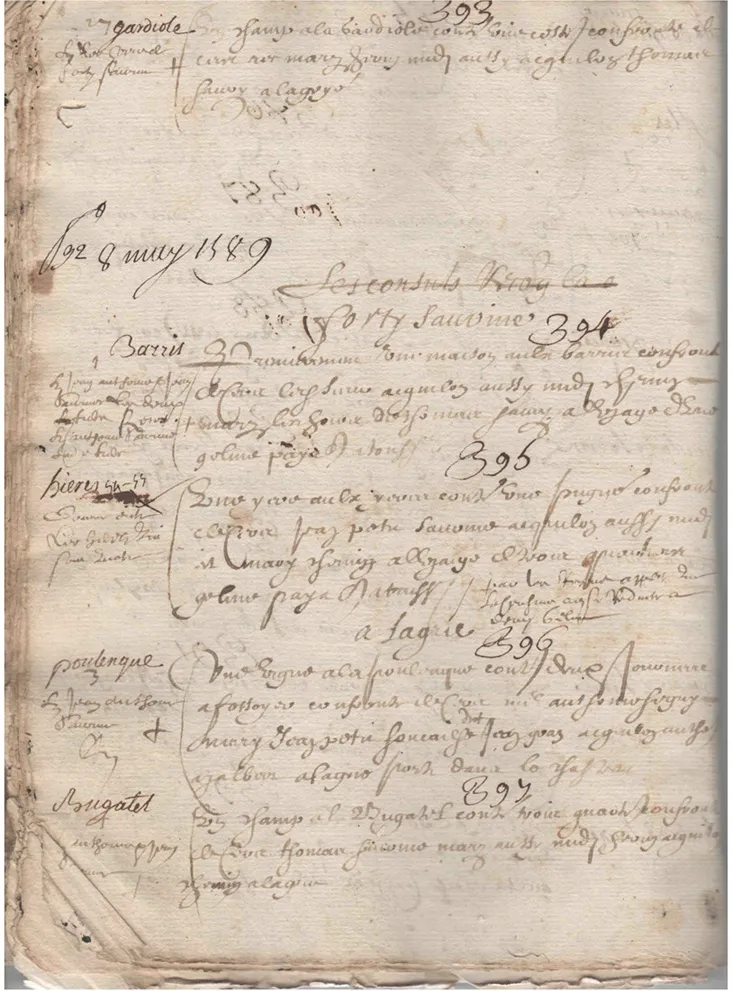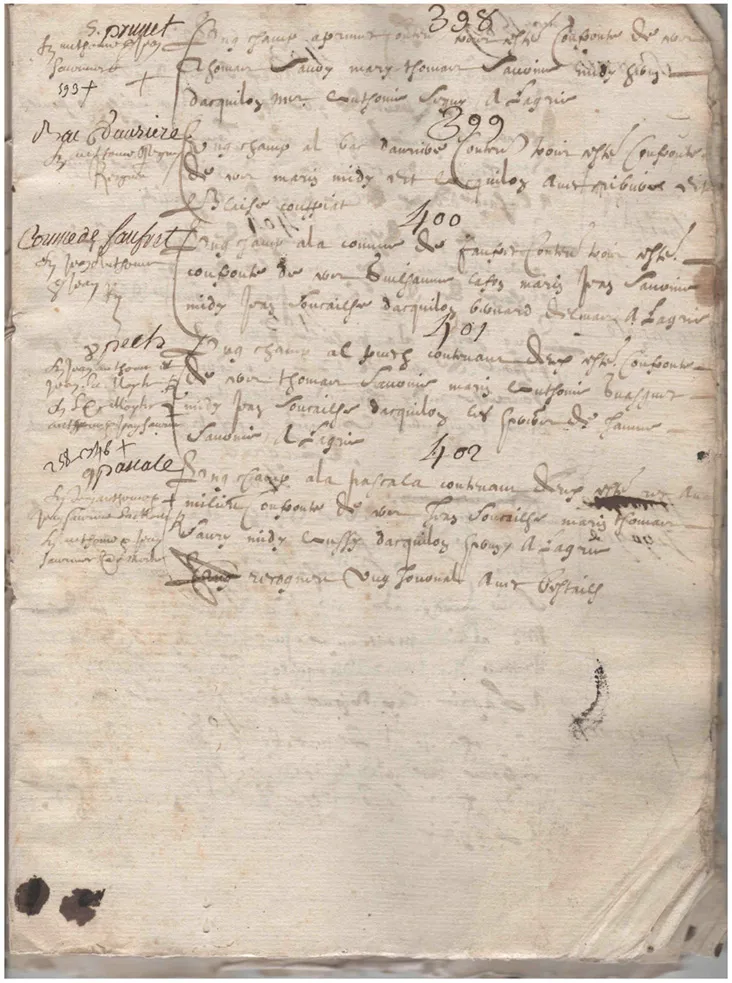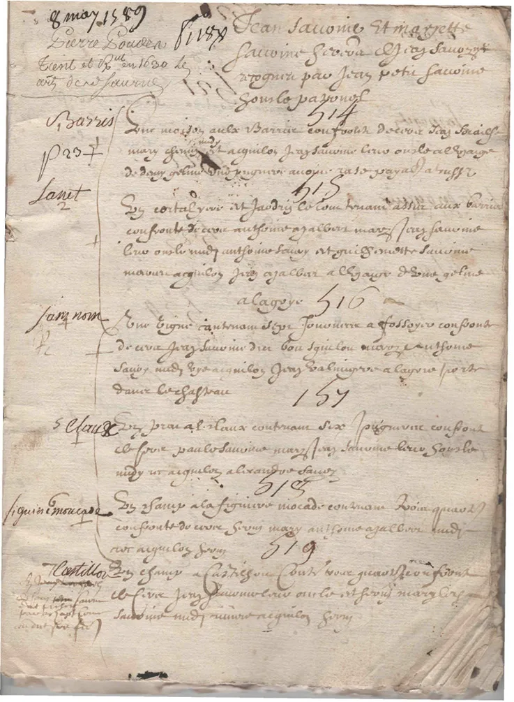 - Rive en Barbié. Champ a La Rive en Barbier, 2 sous. C : Guilhaume Lafon. A : les héritiers dud. feu Jean Saury. M : Blaise Coupiat. Agrie.