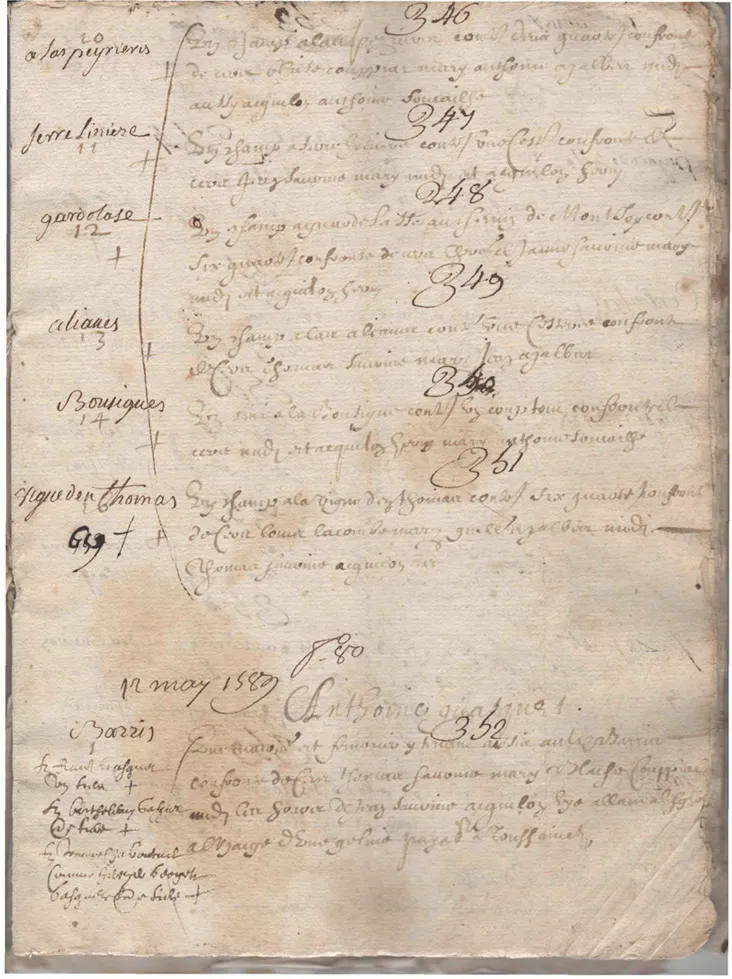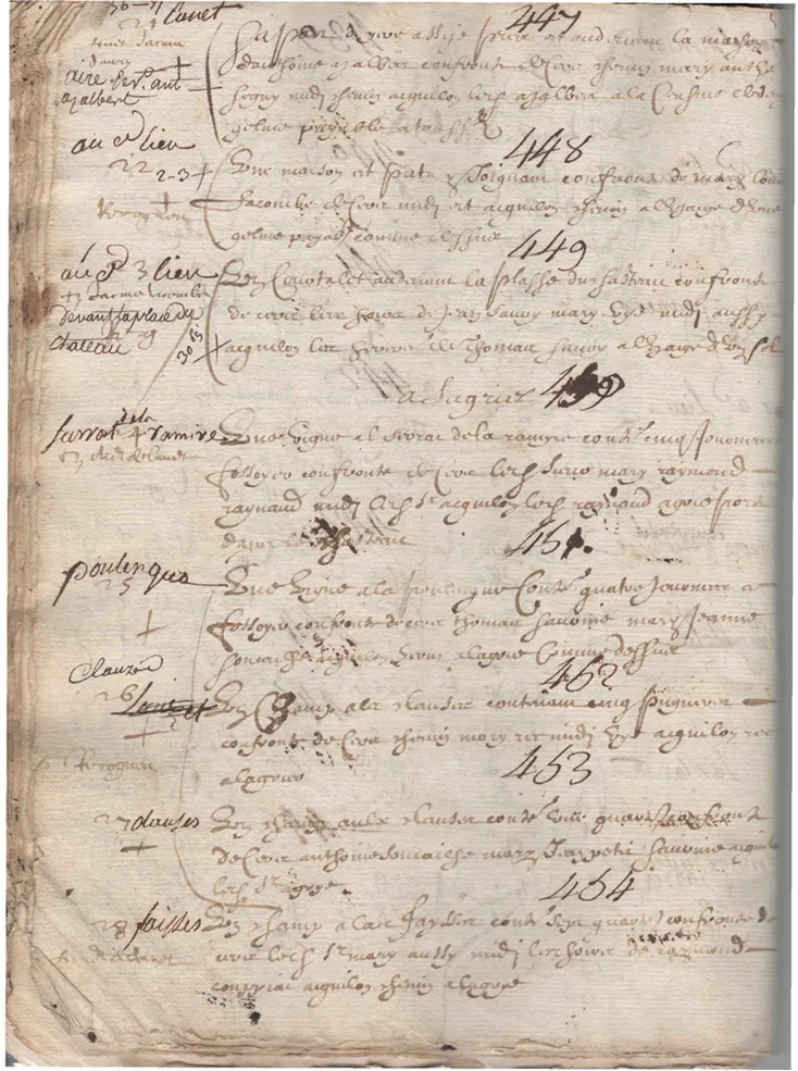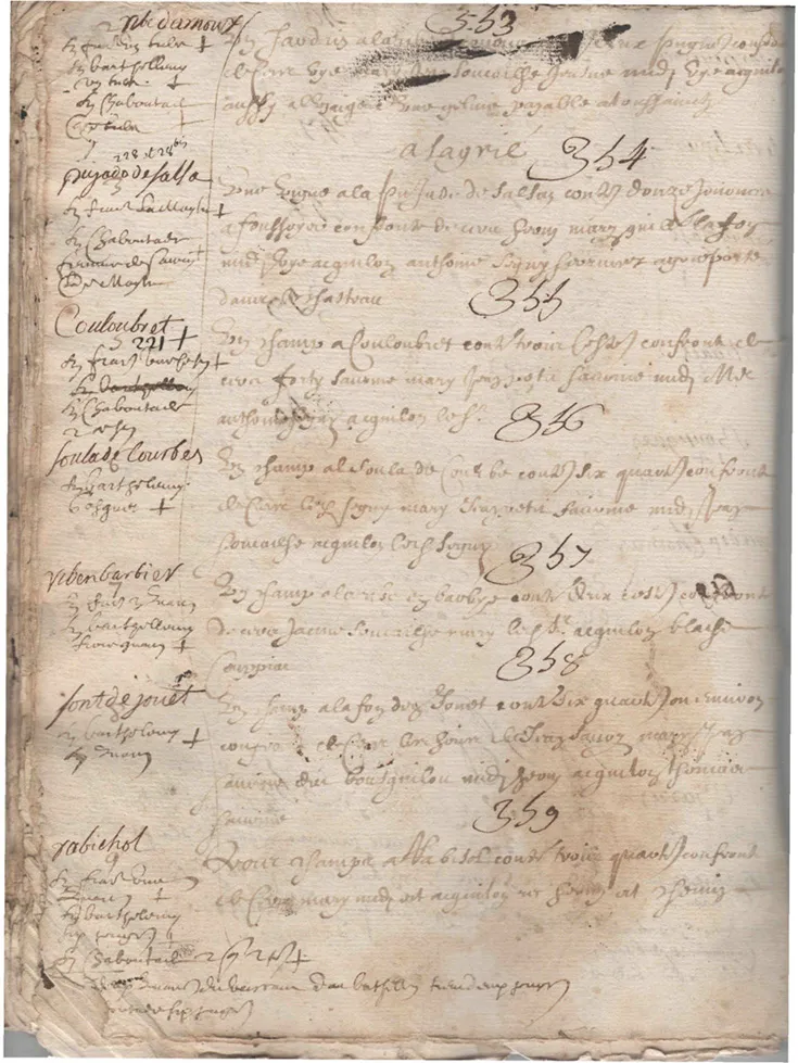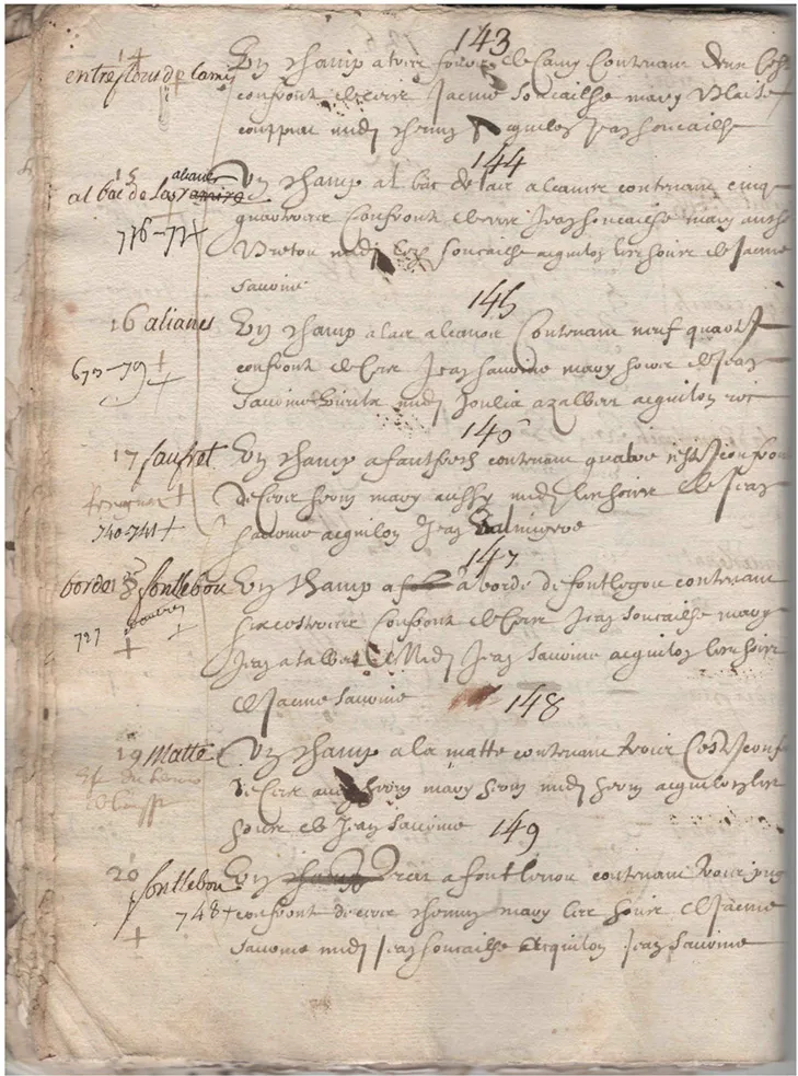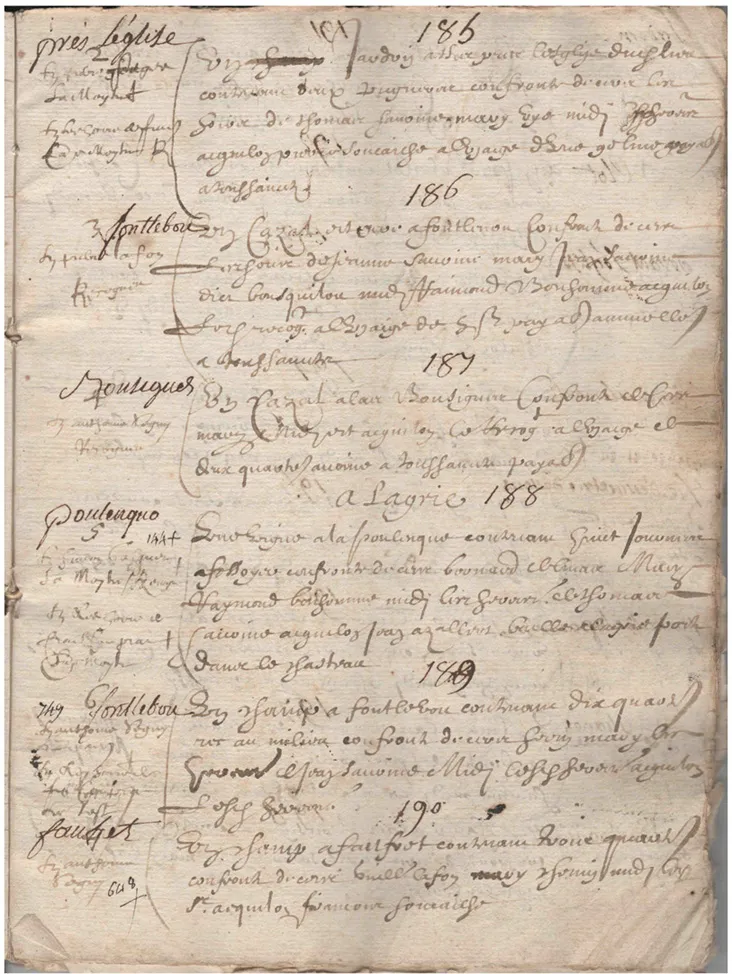 - Frau. Champ al Frau, 5 sous. C : Guilhaume Gasquet. A : Jean Valmigere. M : Jame Souquaille. Aq ; Jean Azalbert. Agrie.
