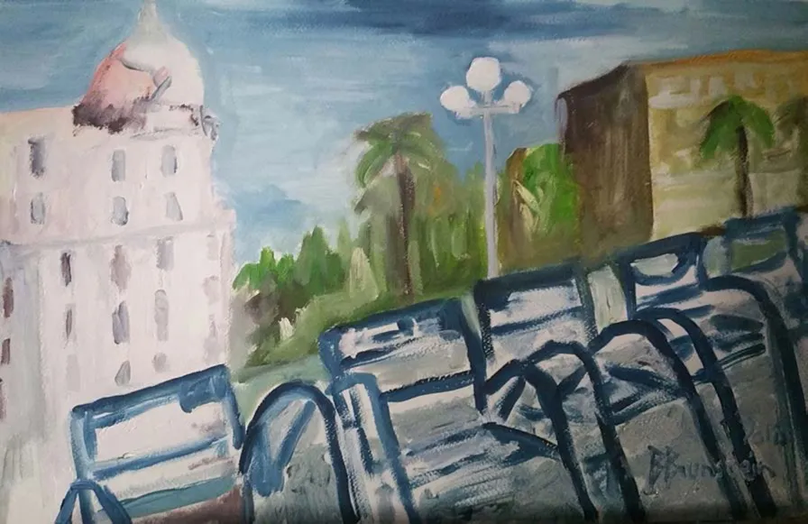 Il vous invite ici à découvrir les chaises bleues de la promenade des Anglais à travers ses écrits et ses peintures.