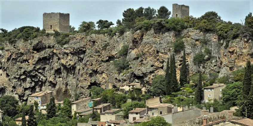 Les tours sarrasines de Cotignac, construites sur la falaise en tuf qui surplombent le village. Falaise, d'ailleurs à l’origine, d'habitats troglodytiques.