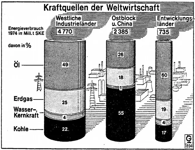 Même lorsque l'ancienne Union Soviétique a découvert de vastes gisements de pétrole en Sibérie occidentale au début des années 1970, la part du Moyen-Orient n'a pas été en dessous de 50% et ensuite a augmenté encore légèrement peu de temps après. À ce jour, le Moyen-Orient est la plus importante zone productrice de pétrole, ce qui se réfléchit également dans l'étendue de la production. L'embargo pétrolier a de nouveau été utilisé comme une arme de pression et a provoqué cette fois-ci une panique majeure parmi les pays importateurs, en particulier aux États-Unis, au Japon et en Europe de l'Ouest, où la consommation de pétrole était passée de 1,5 milliard de tonnes en 1967 à plus de 2,3 milliards en 1973.4