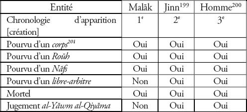 Allah instruit sur quelques-unes de Ses entités intelligentes qui jouent un grand rôle dans ce vaste projet qu’est la Création. Il s’agit, par ordre d’apparition chronologique dans l’Univers, du Malāk [plur. Malāyka], du Jinn196 et de l’Homme197. L’étude, ici, s’intéresse au premier cas : le Malāk.