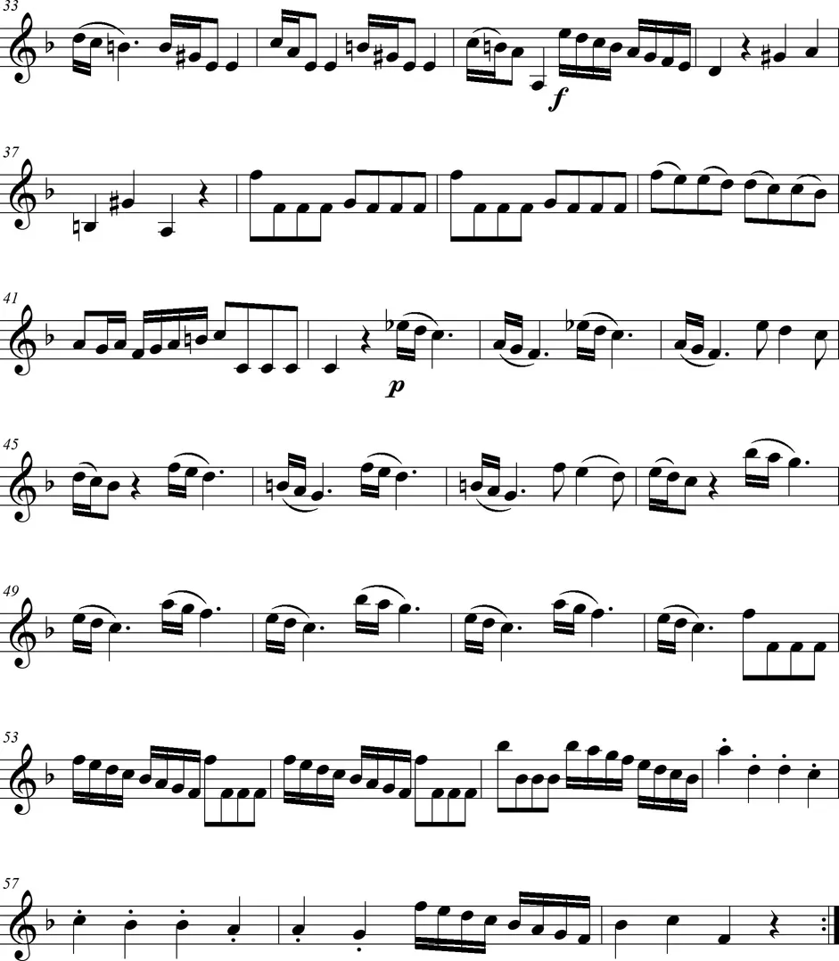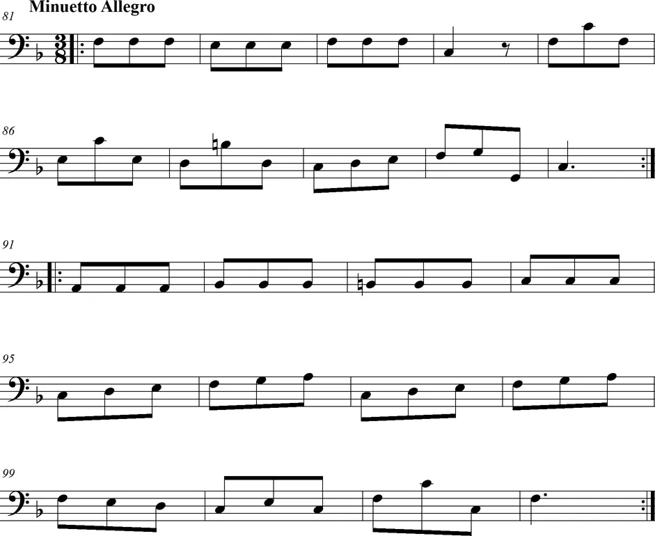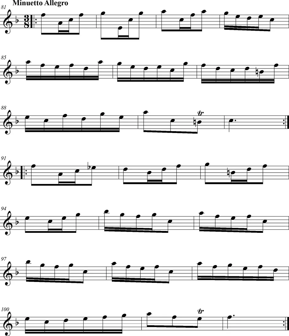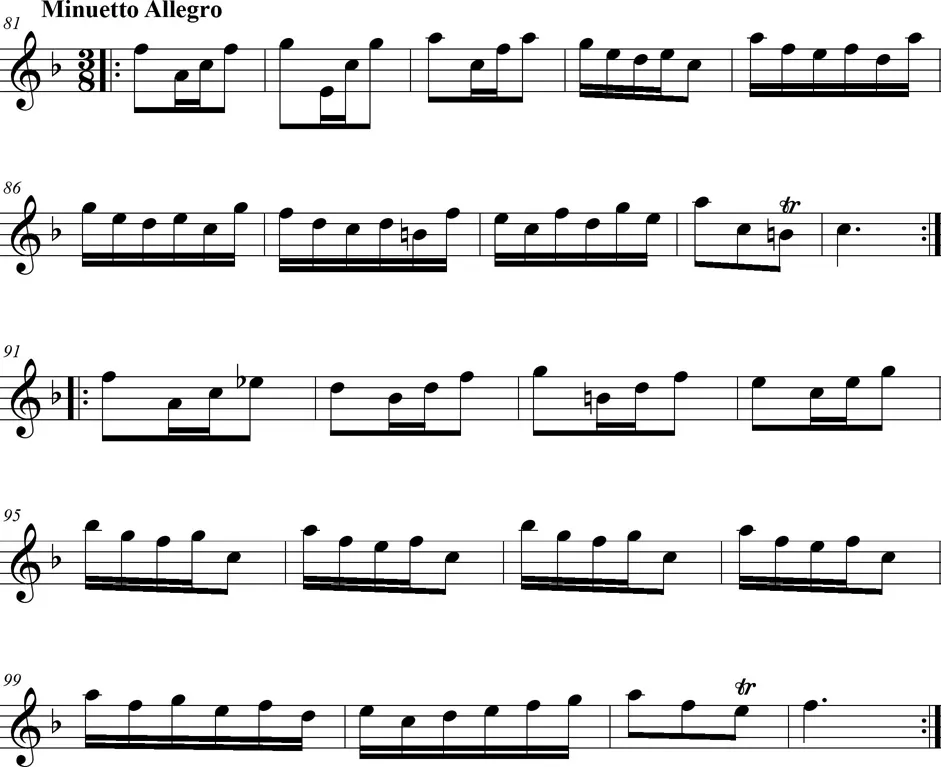 Une pièce pour deux violons et violoncelle de style intermédiaire entre le baroque et le classique, en trois mouvements.