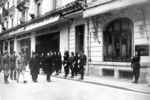 Raoul Saada, Isidore Levy, Mr Sigmond, Van Cleef et Arpels que le conseiller personnel du maréchal Pétain, le docteur Menetrel fit expulser de leurs magasins qui se trouvaient près de l'entrée de l'hôtel du Parc et du Majestic, afin que ni le Maréchal ni la presse, ne les voient. A la place il installa le "bureau de documentation et de propagande".