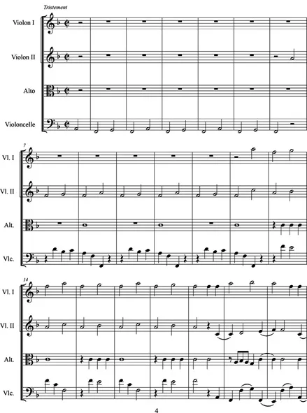 Ce "Carillon des Morts", daté de 1764, est écrit sur les notes des cloches de Rouen, ville où est né le compositeur, organiste et pédagogue Michel Corrette. La nomenclature des instruments: 2 violons, alto, violoncelle, est précisée (ce qui n'était pas toujours le cas à l'époque), mais l'oeuvre est jouable sur des instruments à vent (flûte, hautbois, bassons).