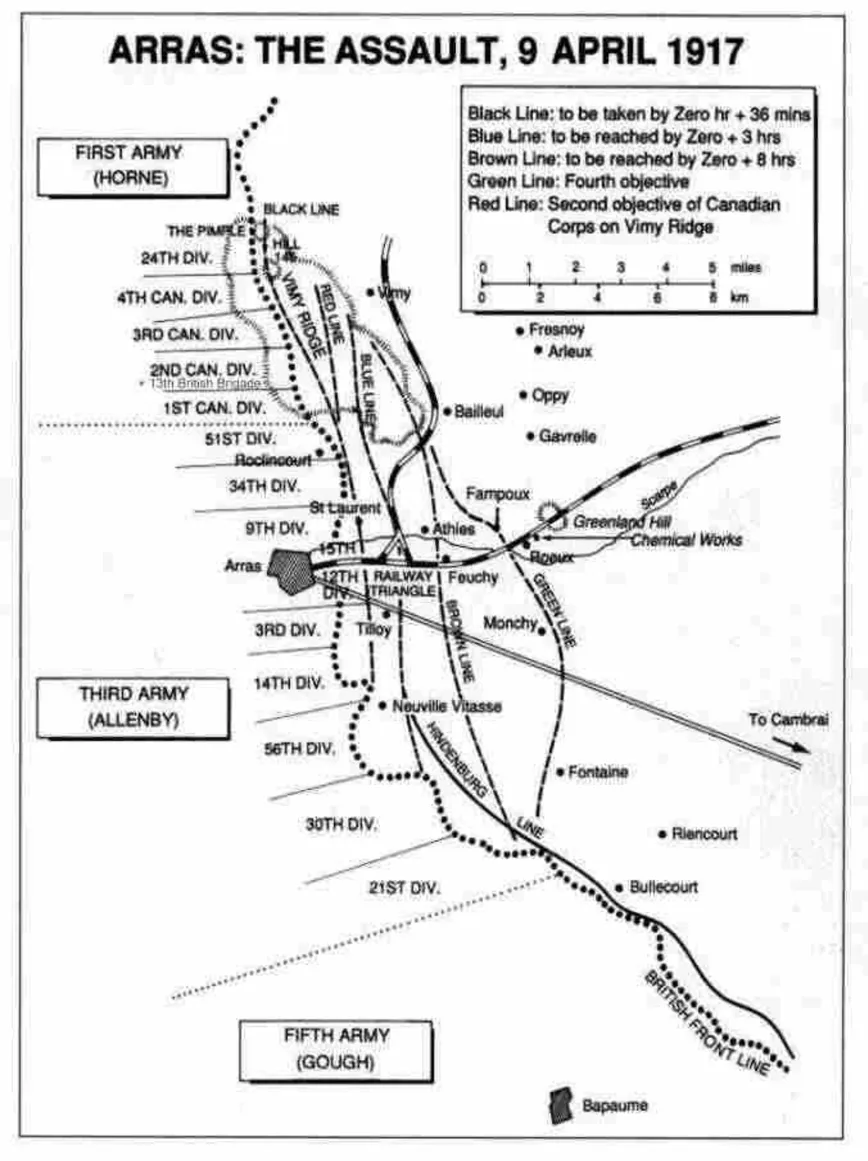 - Dans la semaine du Lundi de PĂąques, soit du 9 au 13/04/1917, une attaque frontale sur lâensemble du front. (First Battle of the Scarpe)