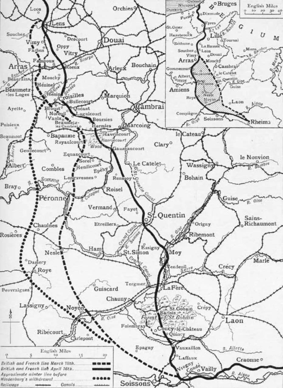 LâavancĂ©e anglaise Ă travers un terrain dĂ©vastĂ© et villages en ruines se fit prudemment et câest fin mars quâelle se trouva en face de la ligne de dĂ©fense allemande. Aux points extrĂȘmes de la Siegfriedstellung c.a.d Ă la Scarpe et Ă lâAisne, que se mit en place le dispositif en tenaille de lâennemi. Les Anglais Ă la Scarpe et les Français Ă lâAisne. Câest en ces points que dĂ©buta la bataille du matĂ©riel mĂ©canique qui, par sa force et violence, relĂ©gua dans lâombre tous les faits antĂ©rieurs de cette guerre. Selon le plan du gĂ©nĂ©ral Nivelle, les positions allemandes devaient ĂȘtre en premie...