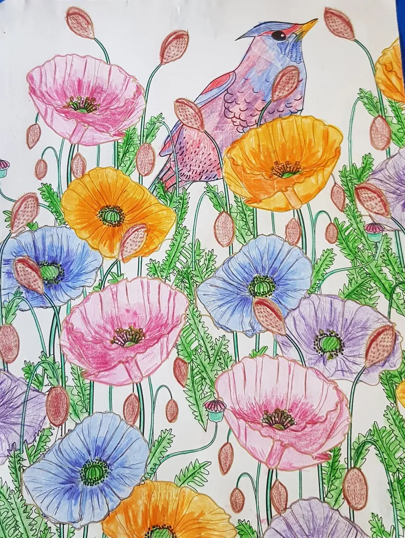 Au milieu des fleurs de pavots,