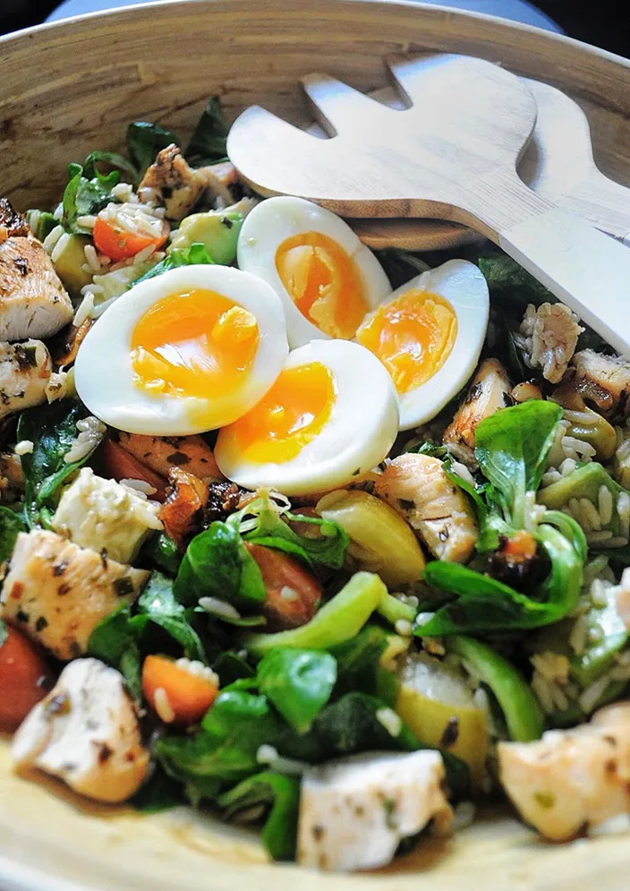 Quand le riz et le poulet sont froids rajoutez les dans le saladier.