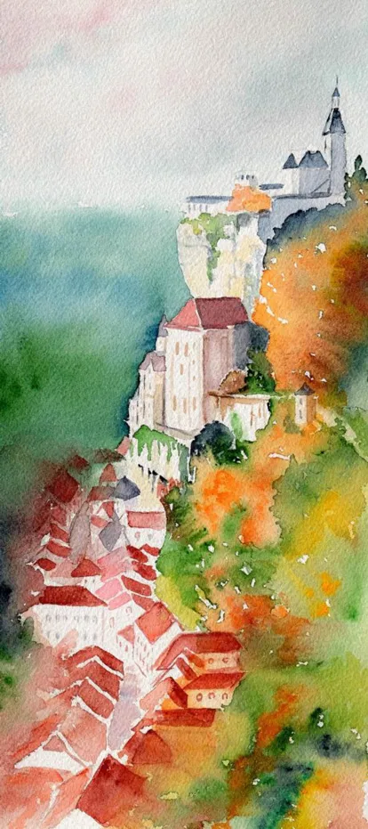 La vallée de la Dordogne, classée au patrimoine mondial par l'Unesco, offre un véritable voyage à travers l'histoire. Villages fortifiés, donjons de granit abandonnés, forteresses au sommet des falaises, sculptures étranges des chapelles romanes transportent vers un passé encore empreint de mystère. C'est par des encres et des aquarelles colorées que l'auteur invite les amoureux du patrimoine à découvrir ces nombreux vestiges médiévaux.