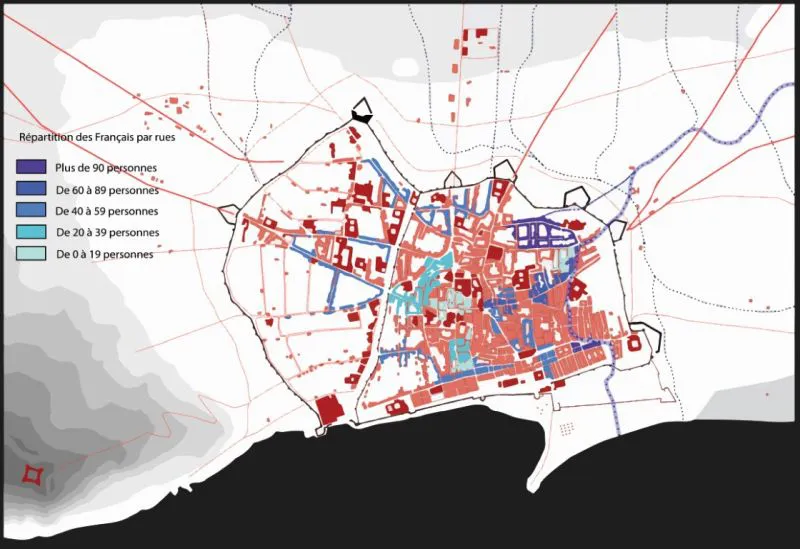 Localisation des Français recensés par la Junta de Represalia en 1637.