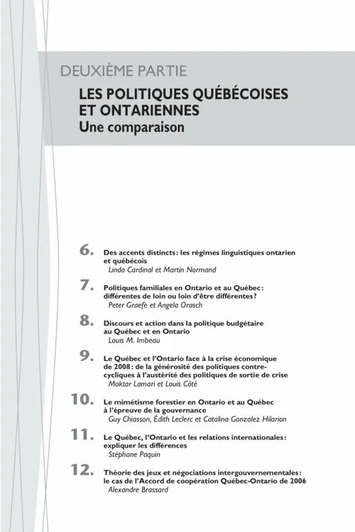 - Deuxième partie - LES POLITIQUES QUÉBÉCOISES ET ONTARIENNES: Une comparaison