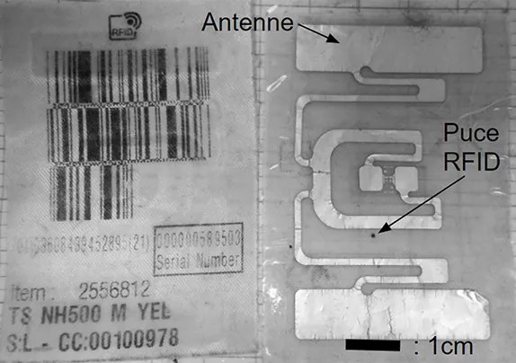 Exemple d’une étiquette RFID textile jetable décapsulée