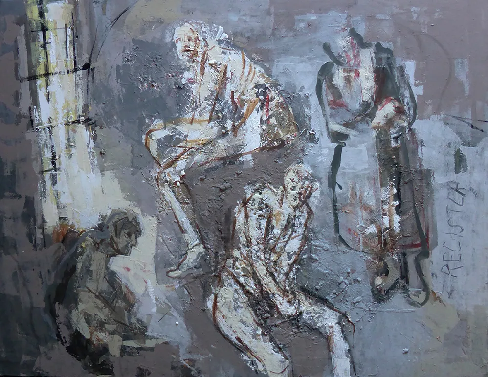 Dans une approche narrative, le peintre évoque l’arrestation, les conditions de détention, la déshumanisation, les violences possibles, le dénuement certain, la question de la conscience individuelle et de la liberté, l’attente, la disparition, la gravure du mot résister, l’oubli et le retour à Pranles avec la couleur retrouvée.