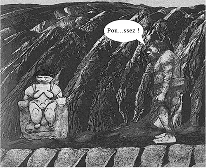 Certains hommes encore naïfs pensaient que l’érection pouvait impressionner les animaux les plus sauvages, mais il s’agit plutôt d’une invocation aux forces surnaturelles que d’une démonstration du pouvoir de l’homme sur la bête.