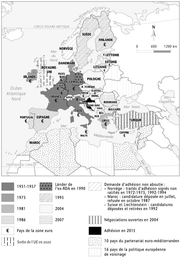 Avec la fin de la guerre froide, ce processus a connu une double recomposition, à la fois géographique avec l’élargissement de l’UE aux anciens pays du bloc soviétique, et politique, avec l’approfondissement des initiatives dans les domaines diplomatique et militaire.