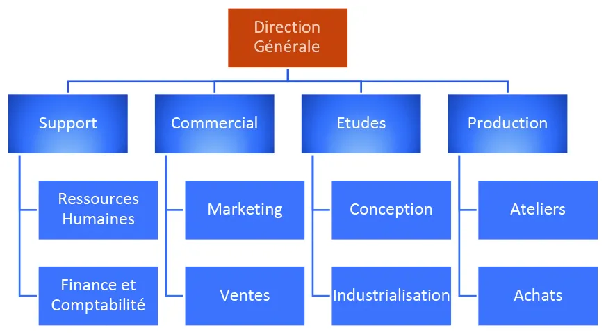 Celles-ci sont organisées en mode « fonctionnel » ou « métier », selon un organigramme pyramidal, où les objectifs sont définis par le N+1 de chacun des collaborateurs jusqu’à remonter à la Direction Générale.