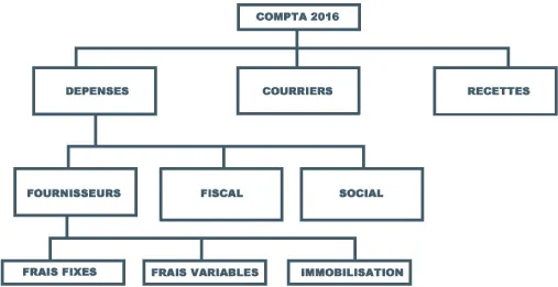 Exemple d’arborescence à quatre niveaux pour un classement d’éléments comptables