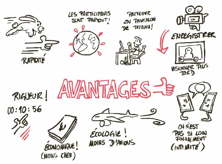 Les contraintes de l’un sont les forces de l’autre. En présentiel, le groupe et les obligations « physiques » obligent à respecter des temps de transition, de passage d’un atelier à un autre. En tant qu’animateur ou facilitateur, nous avons plutôt un rôle d’accélérateur sur ces temps.